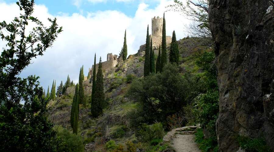 Lors de mon séjour à Carcassonne, j’en ai profité pour visiter le site des châteaux de Lastours qui n’est qu’à 15 km de là. Je ne disposais que de deux jours pour cette escapade en Pays Cathare, alors quand j’ai situé le village de Lastours sur une carte, je me suis dit qu’il serait vraiment dommage de louper ces “petits” trésors médiévaux, sentinelles d’un passé héroïque. Il s’agit en fait des ruines de quatre forteresses cathares construites à égale distance les unes des autres, sur un axe Nord-Sud. Ce qui fait toute la singularité du site. L’autre originalité de cet ensemble est qu’il est perché à 300 m d’altitude sur un éperon rocheux, sur le versant sud de la Montagne Noire. Entre ciel et terre, je m’en vais écouter ce que ces pans de murs abîmés racontent.